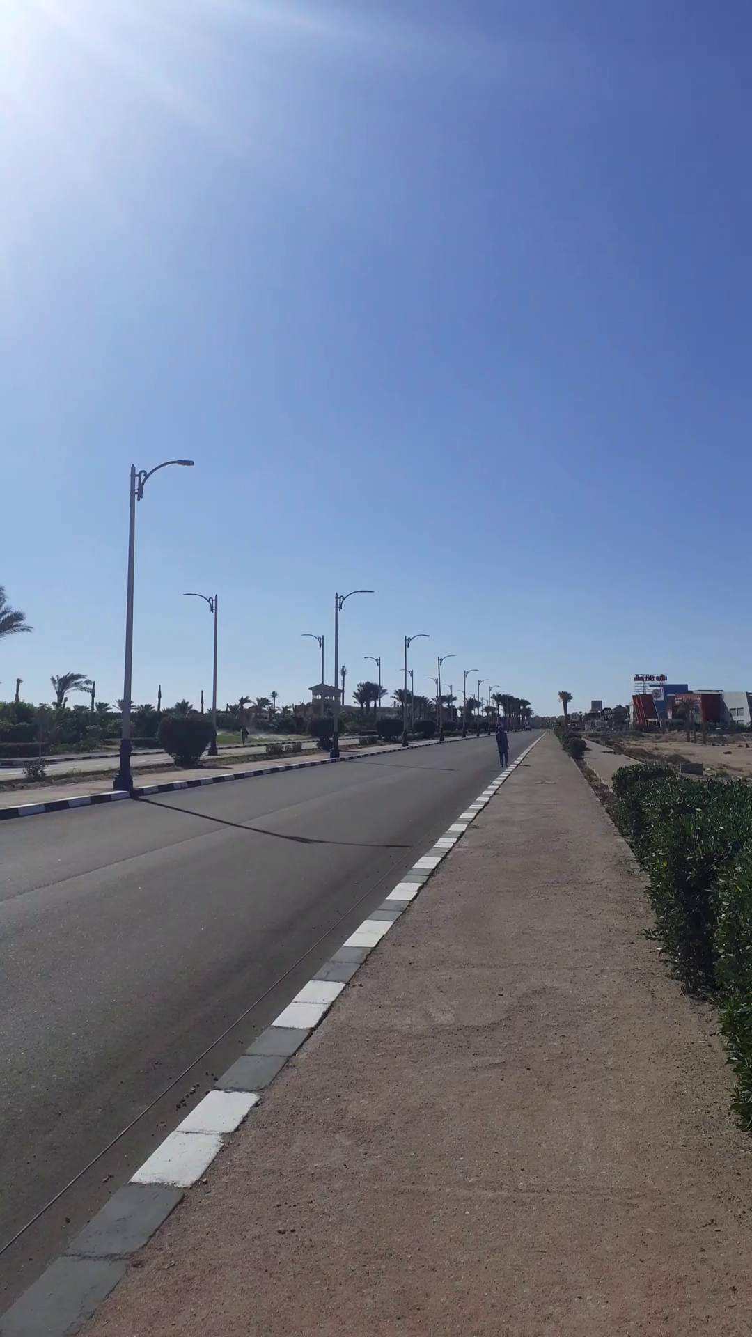 Hneď ako sa zatočí napravo od Aqua Marine Resort, je takáto cesta doprava. Vedie popri múre rezortu.